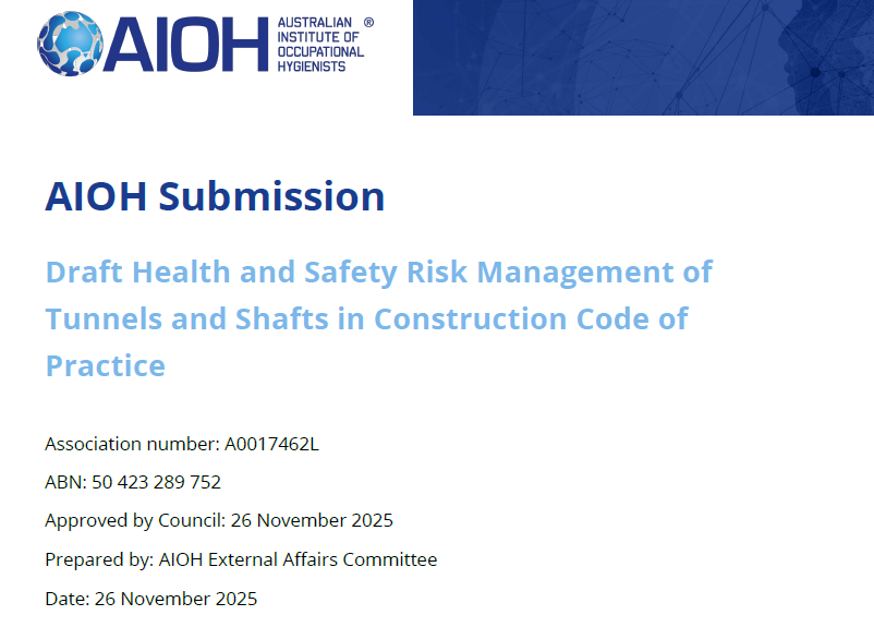 AIOH Submission – Draft Health and Safety Risk Management of Tunnels and Shafts in Construction Code of Practice