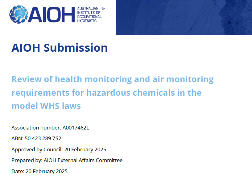 AIOH Submission – Review of health monitoring and air monitoring requirements for hazardous chemicals in the model WHS laws
